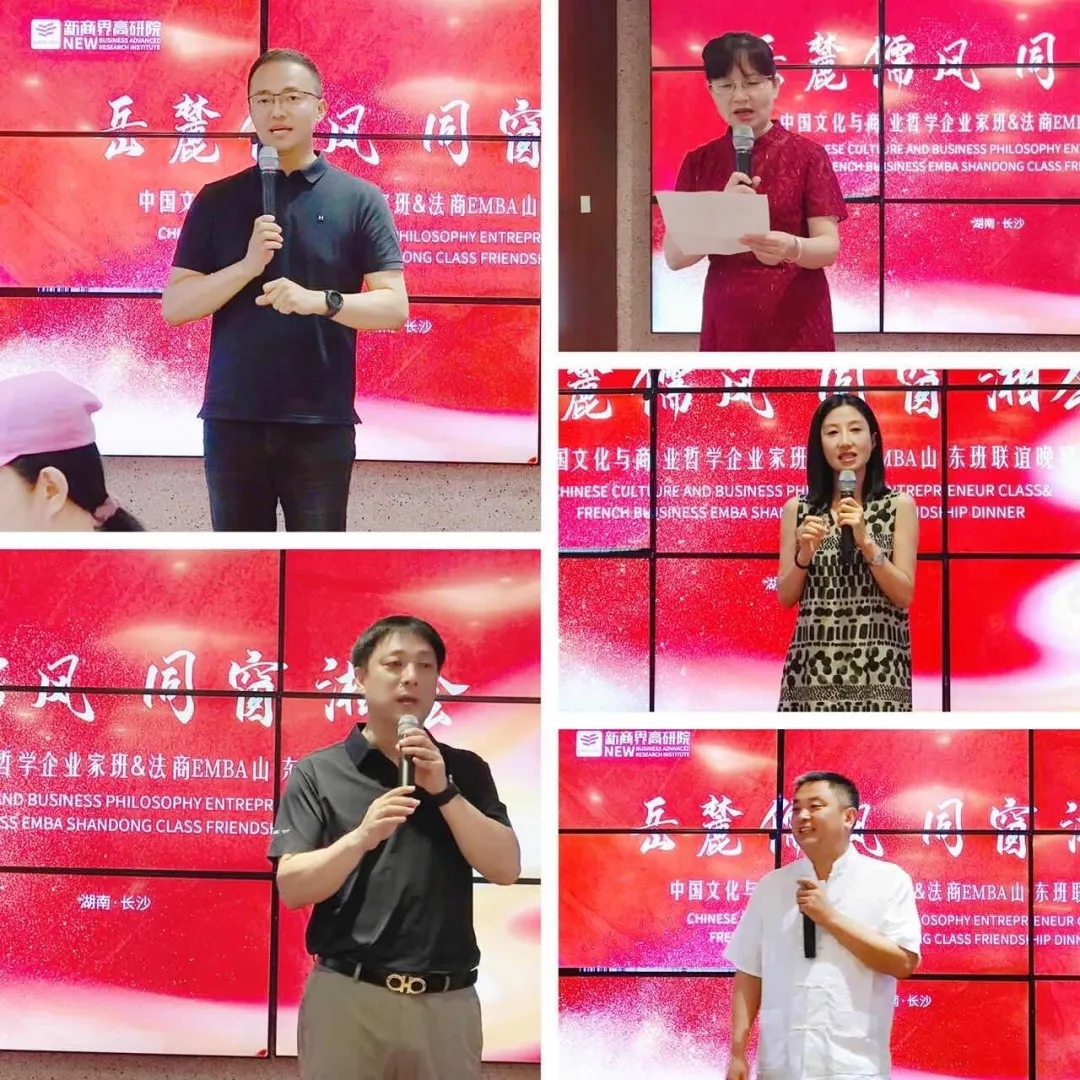 6月27日晚,"岳麓儒风,同窗湘会"---中国文化与商业哲学企业家班&法商EMBA山东班主题联谊晚宴在文脉氤氲中启幕。山东新商界高研院张文社院长、中南大学人文学院胡家蓉主任先后致辞,寄语文化传承与商业创新的深度融合。