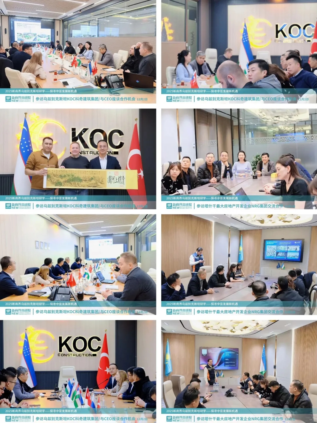 12月2日,研学团参访KОС科奇建筑、NRG房地产集团等行业领军企业,与企业核心负责人共话中亚建筑地产领域的市场需求与合作模式,为中企切入当地基建与地产赛道梳理了方向。
